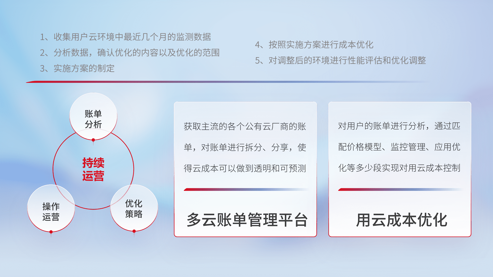 运用智能化工具分析云资源,,,提供日常费用可视化工具,,,,自动账单拆分,,成本优化云上费用,,,,降本增效。。。